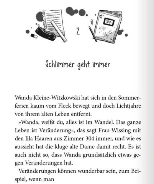 Wandas Ferien waren echt zum Davonlaufen: kein Urlaub, stattdessen Seniorenheim. Die Haare – selbstgeschnitten und total schief. Die beste Freundin? Hat plötzlich eine neue. Und dann muss ihre Klasse auch noch in ein gruseliges altes Schulhaus umziehen. Ehrlich – schlimmer geht’s nicht.