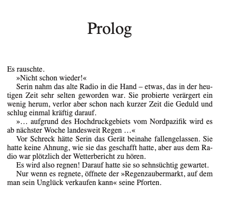 Jedes Jahr zu Beginn der Regenzeit taucht wie aus dem Nichts der Regenzaubermarkt auf: ein magischer Ort, an dem man sein Unglück gegen ein neues Lebensglück eintauschen kann …
